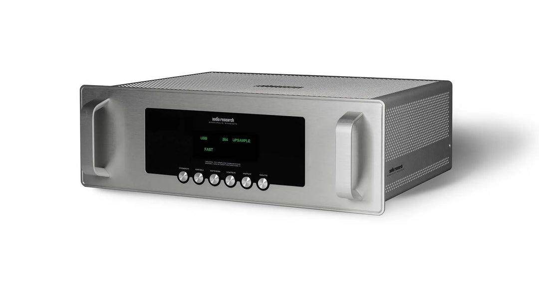 Audio Research designed two separate data paths to the DAC9’s D-A converters: one for PCM files, and another to handle serial DSD files at 1x and 2x DSD clock rates. This assures proper integer decoding eliminating interpolation distortion errors that degrade sonic purity. Native sample-rate upsampling is available for all inputs, up to 384kHz for non-DSD (PCM) music files.