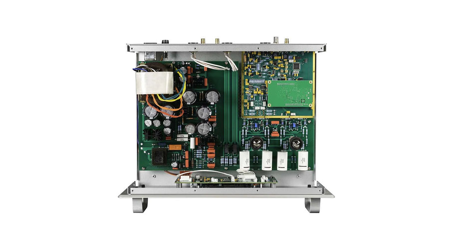 Selectable digital filters are available for customization. An asynchronous USB input, along with four galvanically isolated SPDIF inputs, assures all of your digital sources will integrate with the DAC9. We pioneered using quad D-A converters, with each channel using dual stereo DACs running in mono to increase dynamic range and lower the noise floor.